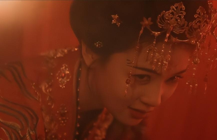 就连开篇灵堂中的红嫁衣戏份也迅速破圈,凤冠垂珠映着烛影摇曳,霞帔泛出冷调幽光,仿佛凝固了时间的悲怆。